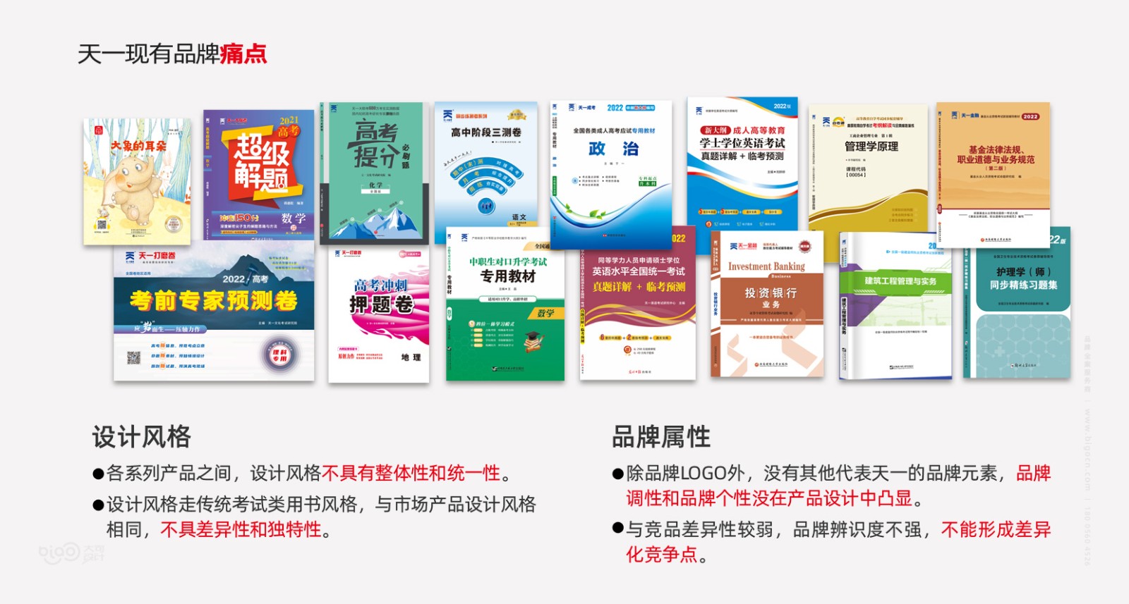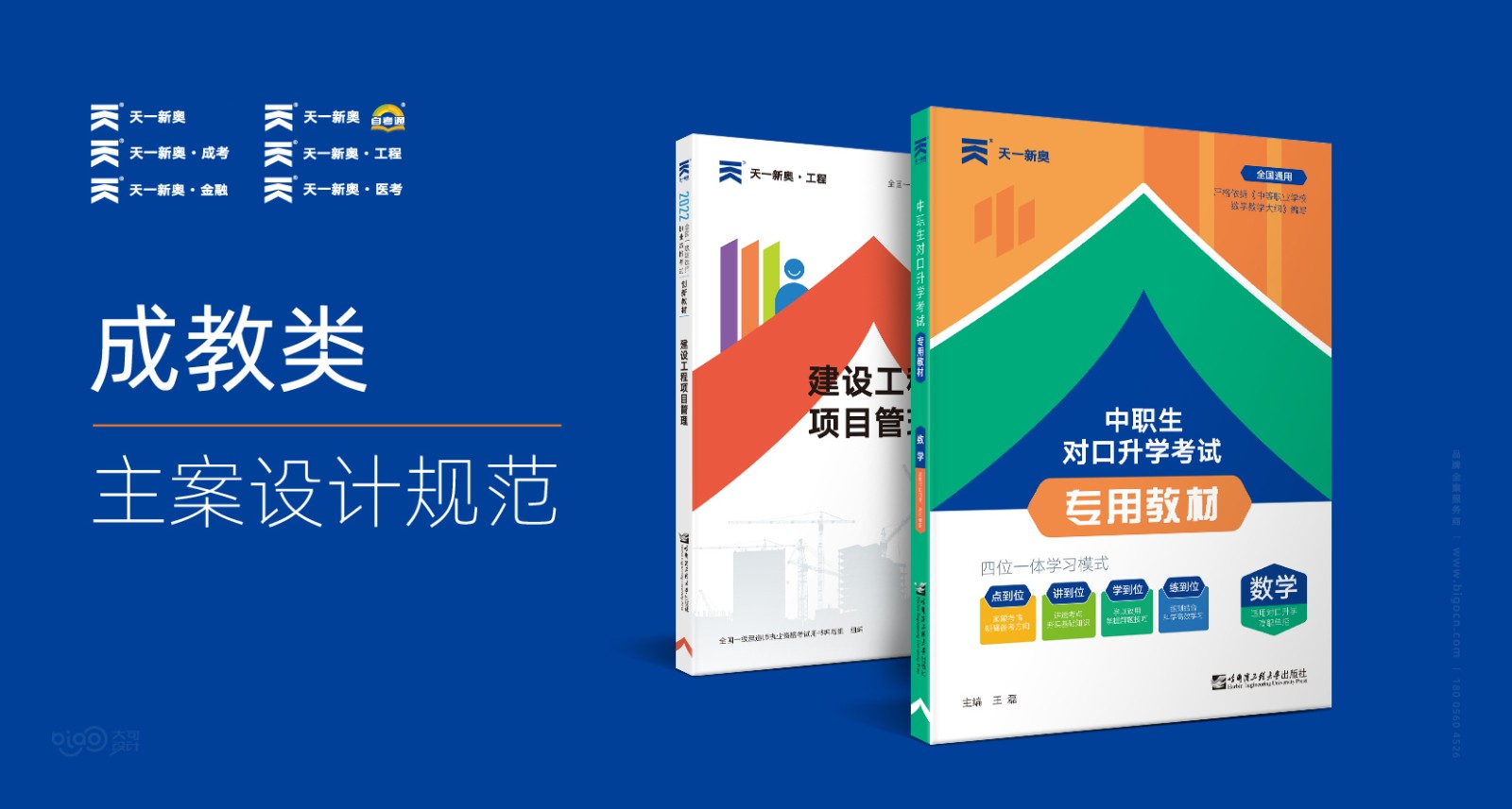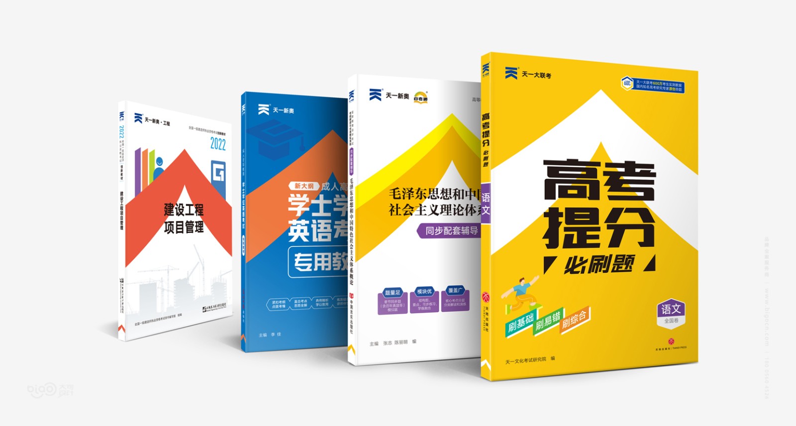 围绕天一品牌“向上、晋级”的核心理念以及打造强化专业、年轻化的品牌个性认知,创作团队以天一品牌LOGO提炼“向上箭头”的图形,并融合“人”、“A”理念简约设计,诠释天一品牌天人合一、以人为本、积极向上、不断进取的品牌理念。同时,将此“向上箭头”的图形作为天一品牌的超级符号统一应用到其所有系列图书产品中,并且根据不同系列产品的具体特点通过采用清新、明亮的色彩以及板式结构进行统一而又个性的设计,给人年轻活力、积极向上、专业的感觉,从而契合品牌理念与风格并做到各系列产品之间品牌整体性和统一性强,品牌辨识度高。